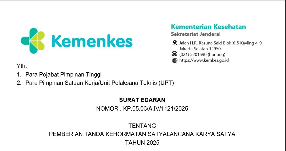 SURAT EDARANTENTANGPEMBERIAN TANDA KEHORMATAN SATYALANCANA KARYA SATYA TAHUN 2025Yth. Para Pejabat Pimpinan Ti...