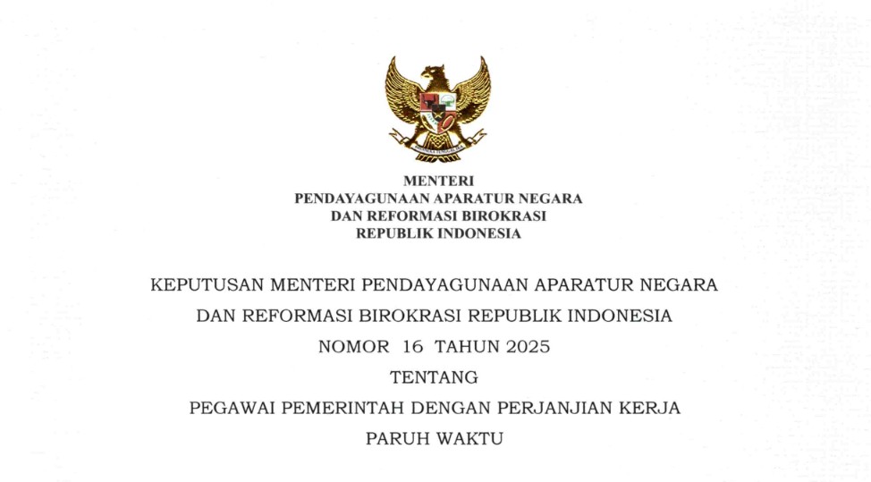 Keputusan Menteri Pendayagunaan Aparatur Negara dan Reformasi Birokrasi Republik Indonesia Nomor 16 Tahun 2025 tentang Pegawai Pemerintah dengan Perjanjian Kerja Paruh Waktu ...