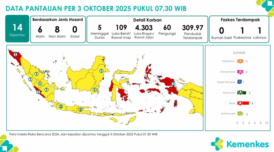 Disini anda dapat mengunduh laporan pemantauan harian berpotensi kejadian Krisis Kesehatan tanggal 3 Oktober 2025