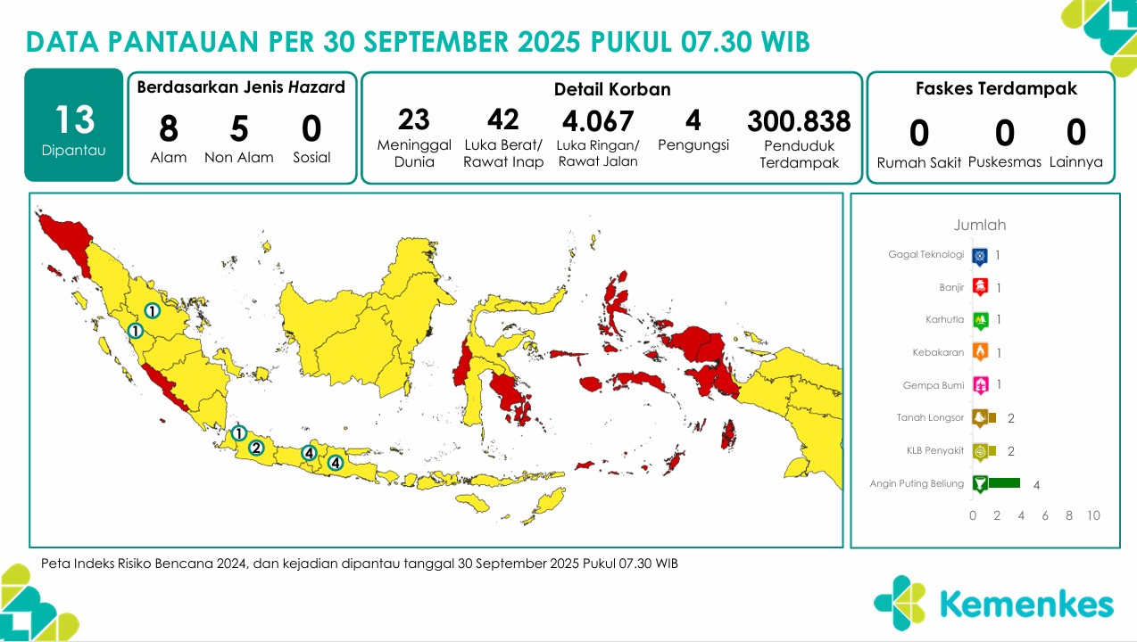 Disini anda dapat mengunduh laporan pemantauan harian berpotensi kejadian Krisis Kesehatan tanggal 30 September 2025