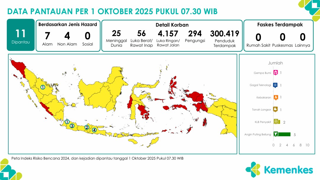 Disini anda dapat mengunduh laporan pemantauan harian berpotensi kejadian Krisis Kesehatan tanggal 1 Oktober 2025