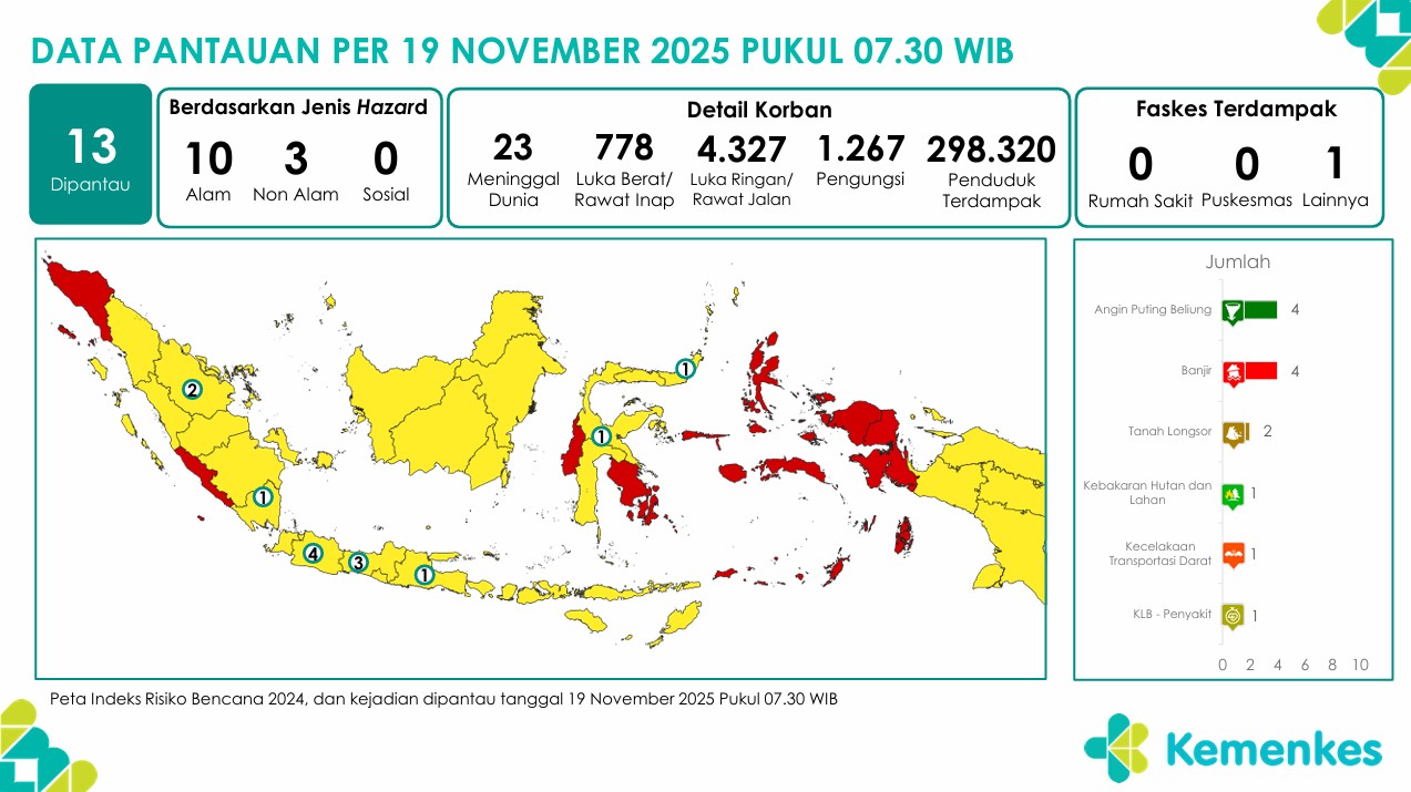 Disini anda dapat mengunduh laporan pemantauan harian berpotensi kejadian Krisis Kesehatan tanggal 19 November 2025 Lihat Laporan Pemantauan Harian Pusat Krisis Kesehatan 19 November 2025